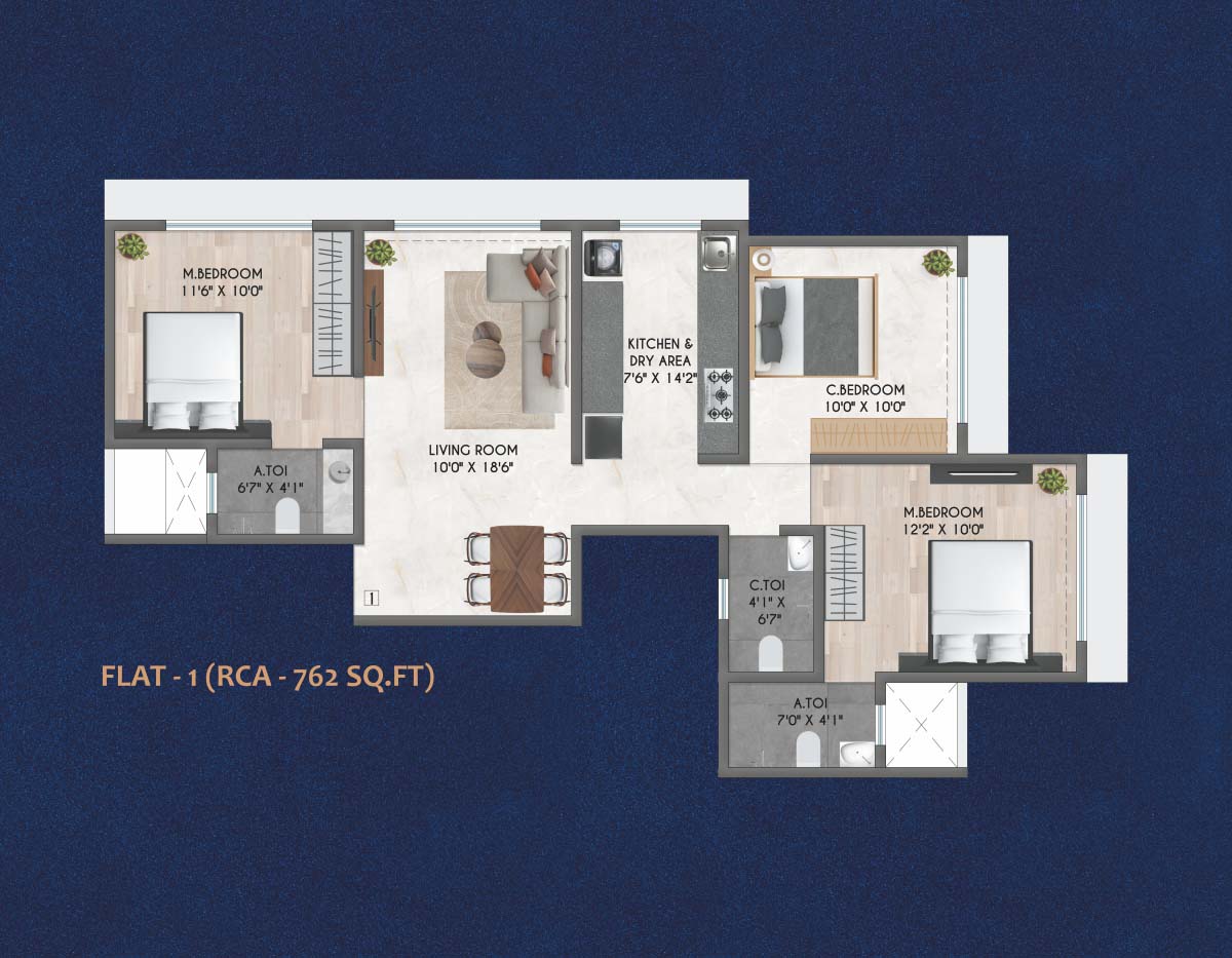 Disclaimer : All the specifications, Plans, images, Designs, Facilities, Dimensions and other details herein are only indicative and subject to the approval of concerned authorities and the Developers reserve the right to change any of these in the interest of the Development without any notice or obligation. This printed material does not constitute an offer or contract between the Developers/ Owners and the recipient. Facilities & Interiors including Furniture etc. are only indicative and not part of sale price.
